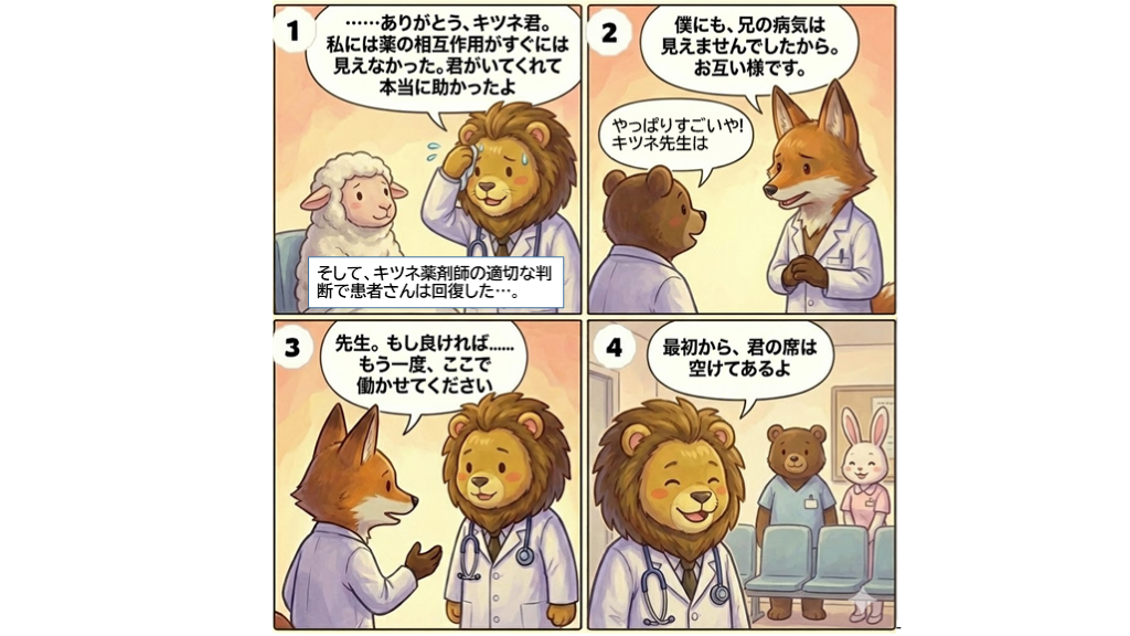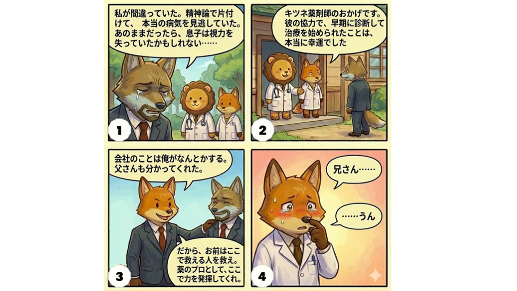 #24. そして、キツネ薬剤師の適切な判断で患者さんは回復した…。 やっぱりすごいや!キツネ先生は