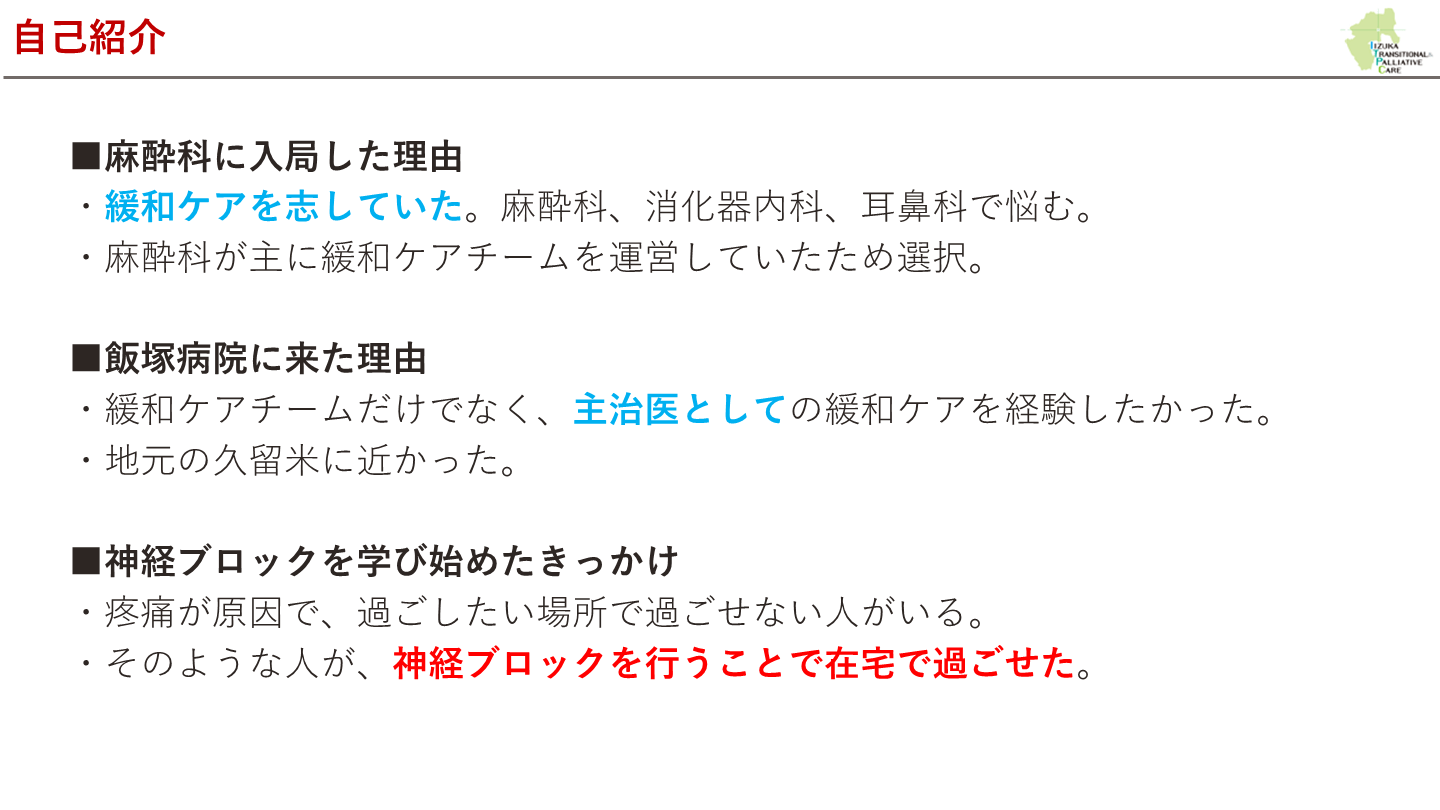 がん疼痛に対する神経ブロックの普及を目指して ~飯塚病院 連携医療・緩和ケア科 ペイン部門での取り組み~