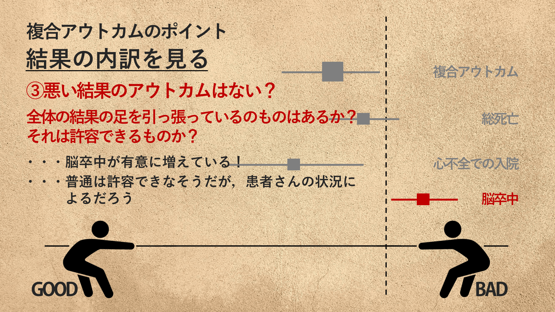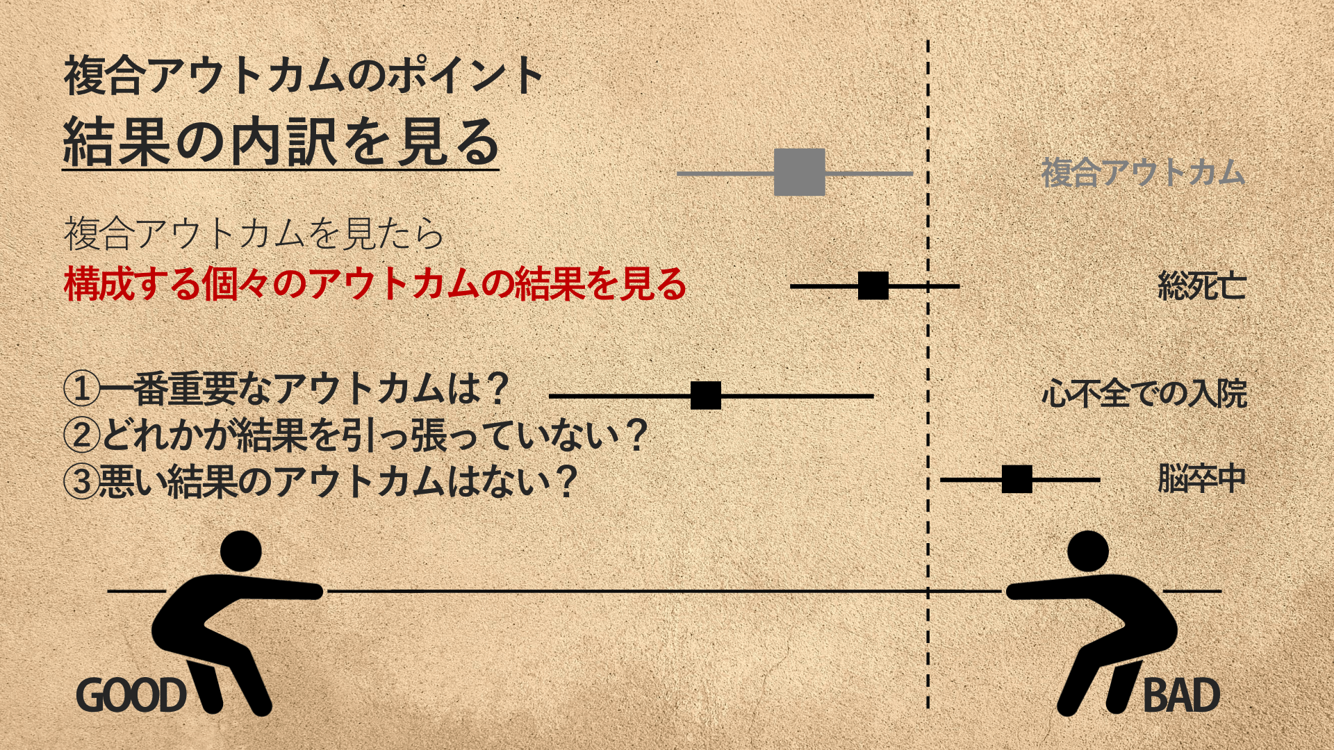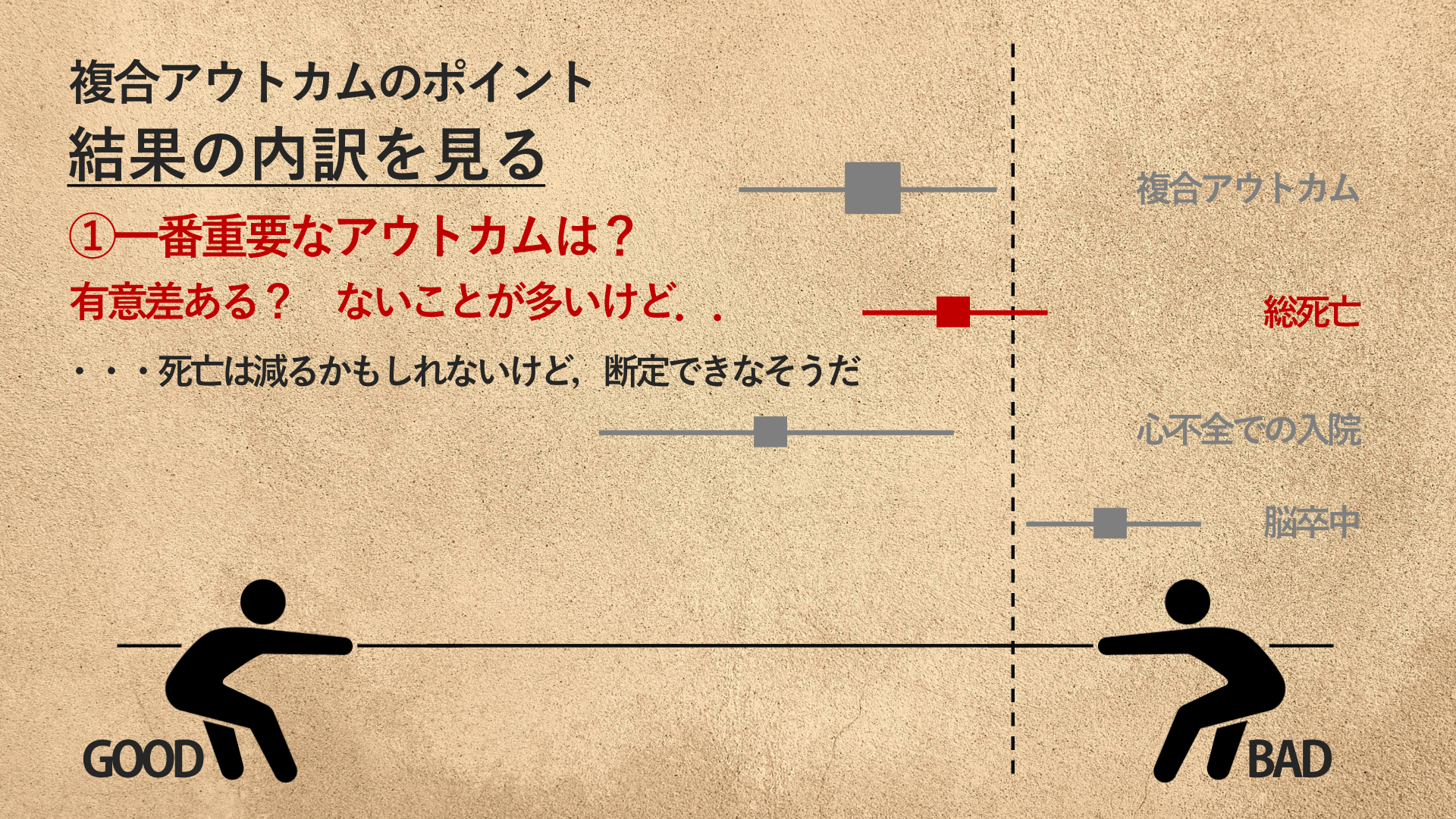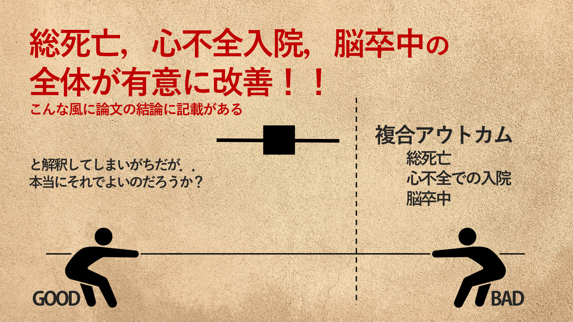 #1. 複合アウトカム 吟味で結果の印象がひっくり返る可能性がある