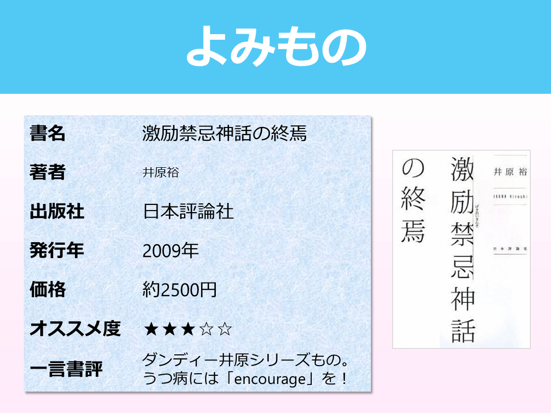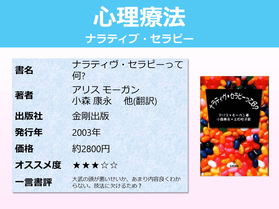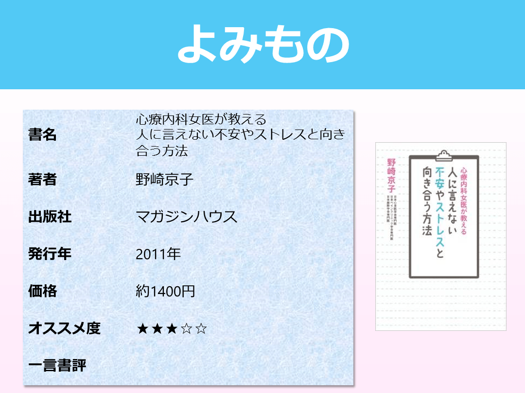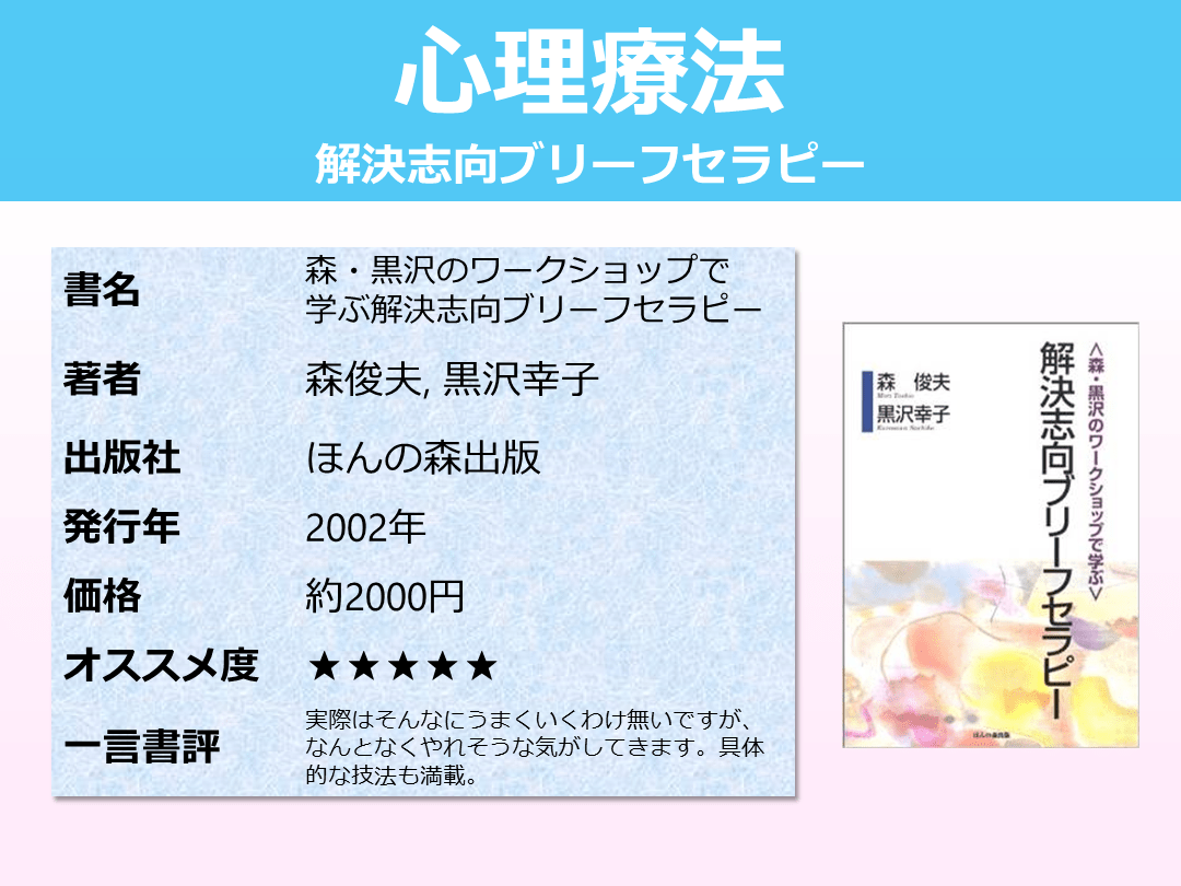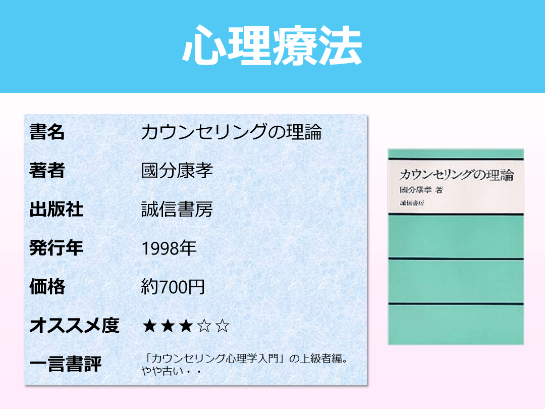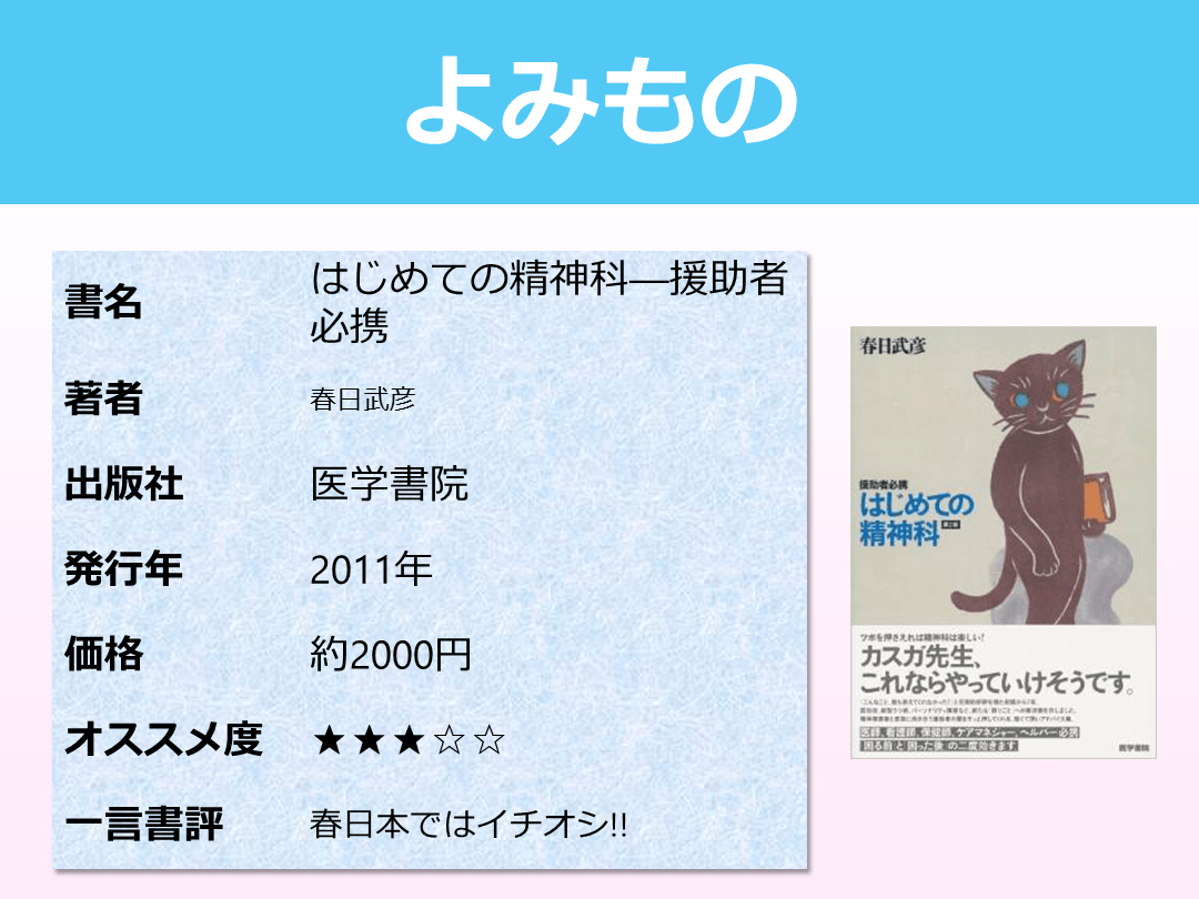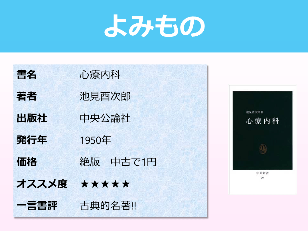 ※私の心療内科研修当時のもので、価格違い、現在絶版(もしくは入手困難)などの書籍が多数あります。またこれ以後6年間でも良い書籍が沢山出てきましたので、またご要望があればまとめます。