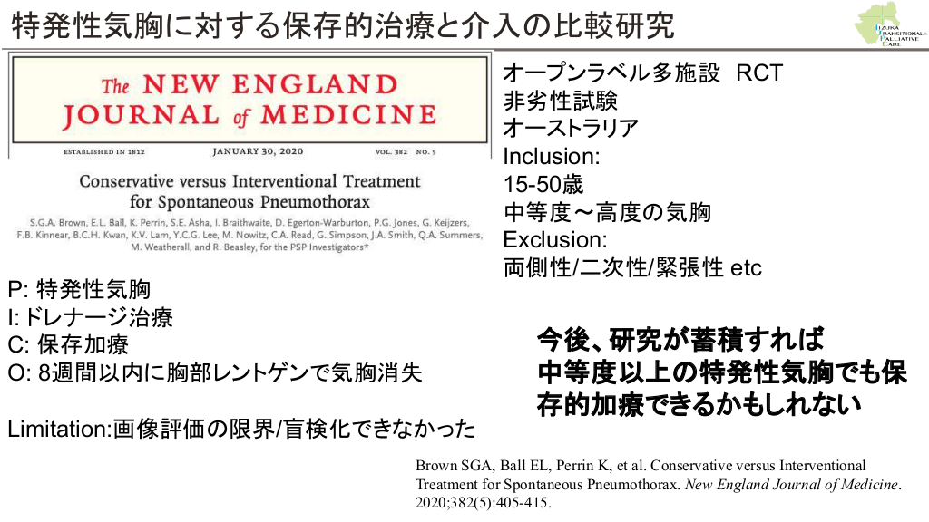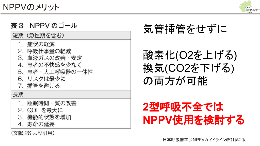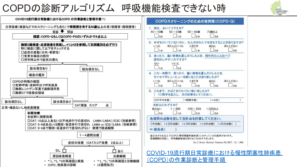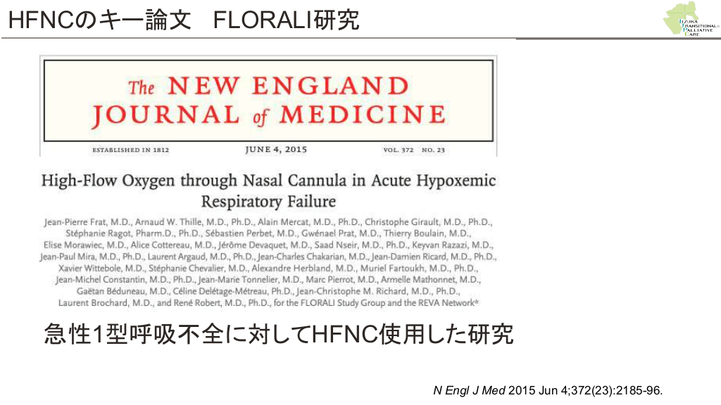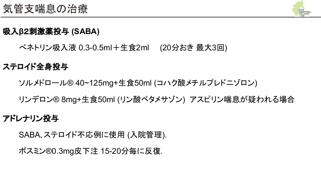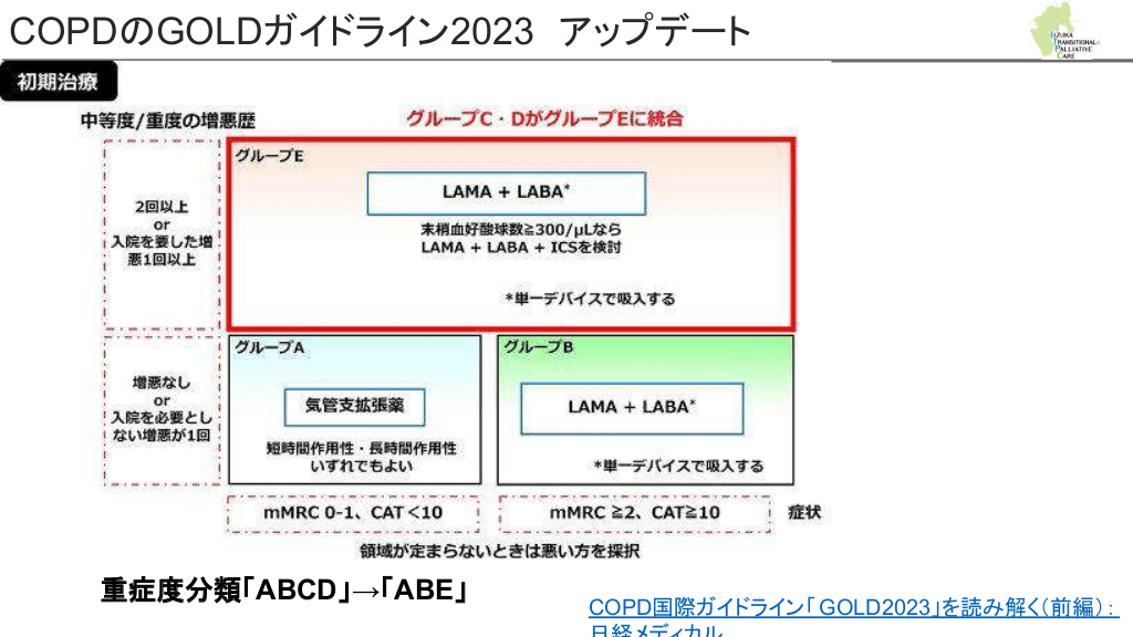 COPD 重症急性増悪に対するマグネシウム静注 マグネシウム 静注 短時間作用型 気管支拡張作用がある (気道平滑筋細胞へ カルシウム流入 抑制) 重度 喘息発作に有用である。COPDに 推奨されなていなかった。 救急部で マグネシウム静脈内投与により、プラセボと比較して入院 率が低下した。 重症例で硫酸マグネシウム(2gを20分かけて点滴) 投与を行う ※喘息、COPD 急性増悪に対して保険適応 ない Ni H, Aye SZ, Naing C. Magnesium sulfate for acute exacerbations of chronic obstructive pulmonary disease. Cochrane Database of Systematic Reviews. 2022;2022(5). Gottlieb M, Moyer E, Meissner H. What Is the Role of Magnesium Sulfate for Acute Exacerbations of Chronic Obstructive Pulmonary Disease? Annals of Emergency Medicine.