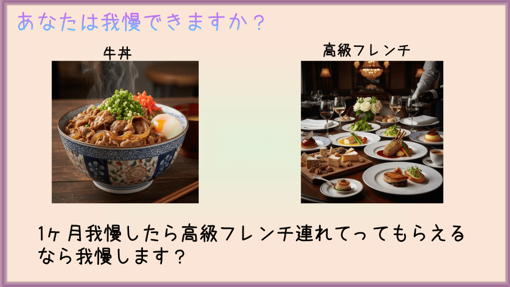 #16. あなたは我慢できますか? 牛丼 高級フレンチ 1ヶ月我慢したら高級フレンチ連れてってもらえる なら我慢します?