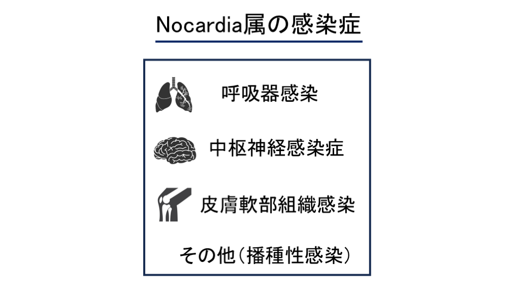 #45. Nocardia属の感染症 呼吸器感染 中枢神経感染症 皮膚軟部組織感染 その他(播種性感染)