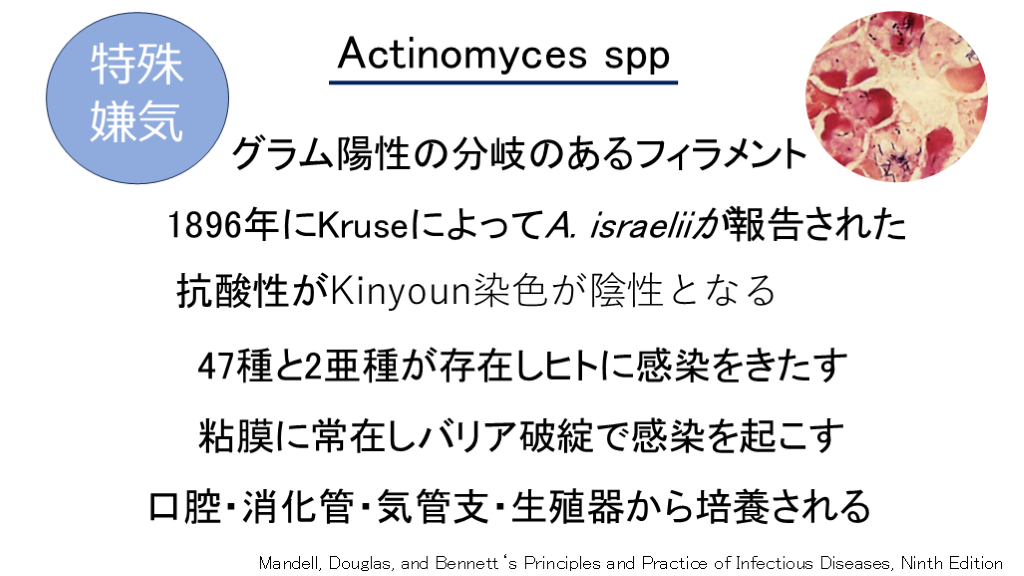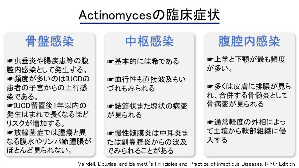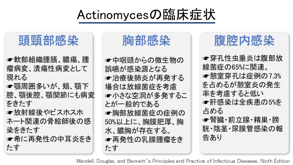Actinomycesの臨床症状 Mandell, Douglas, and Bennett‘s Principles and Practice of Infectious Diseases, Ninth Edition
