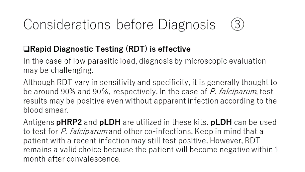 Considerations before Diagnosis ③ Rapid Diagnostic Testing (RDT) is effective