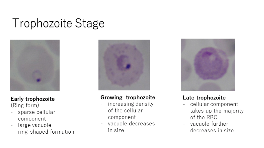 This stage plays an essential role in identifying the species of malaria as there are many visual differences among the species.