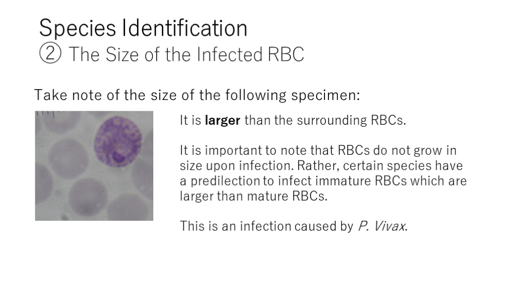 Species Identification② The Size of the Infected RBC Take note of the size of the following specimen: