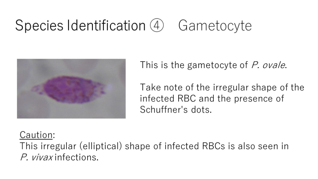 Species Identification ④ Gametocyte This is the gametocyte of P. ovale.