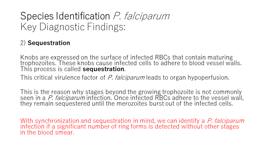 Species Identification P. falciparumKey Diagnostic Findings: 2) Sequestration
