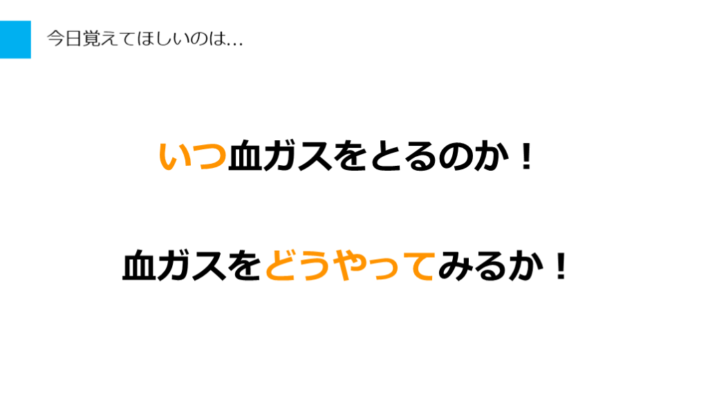 #4. いつ血ガスをとるのか! 今日覚えてほしいのは… 血ガスをどうやってみるか!