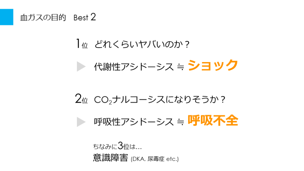 意識障害 (DKA, 尿毒症 etc.) 血ガスの目的 Best 2 1位 2位