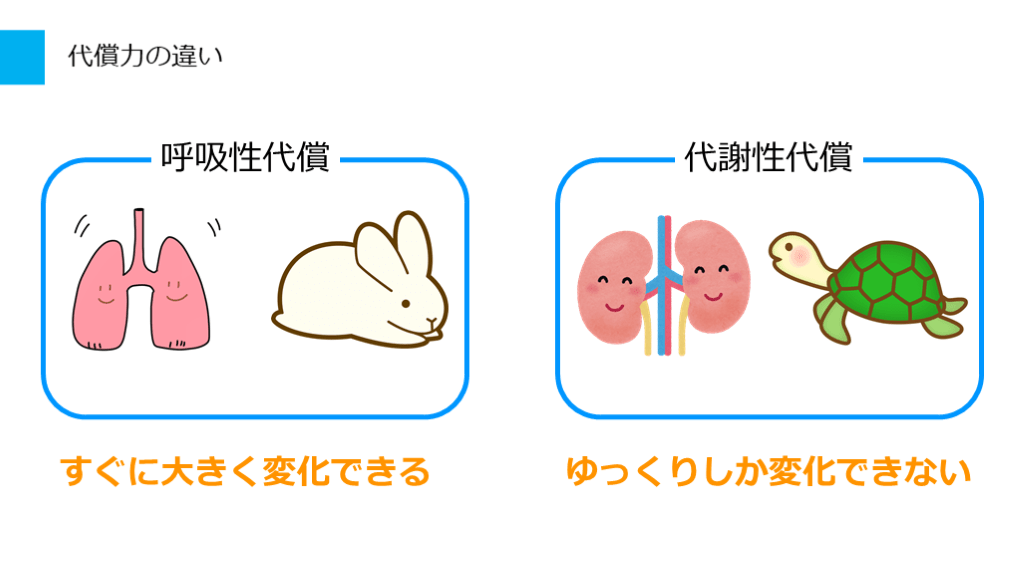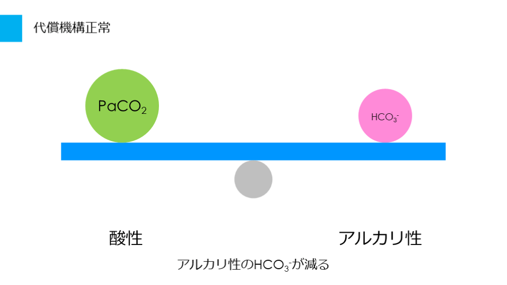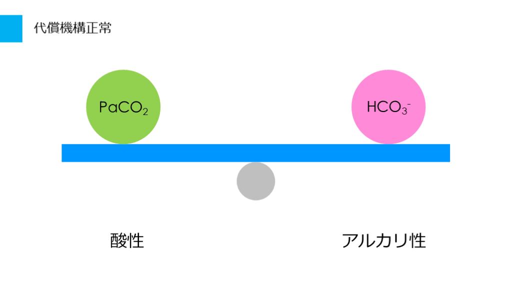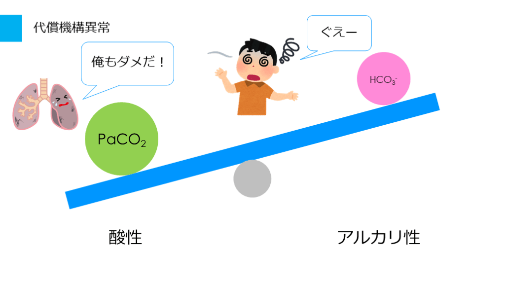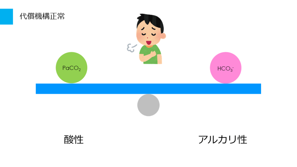 #26. 代償機構正常 HCO3- PaCO2 酸性 アルカリ性 僕が頑張る! 呼吸が頑張ってPaCO2が減る!