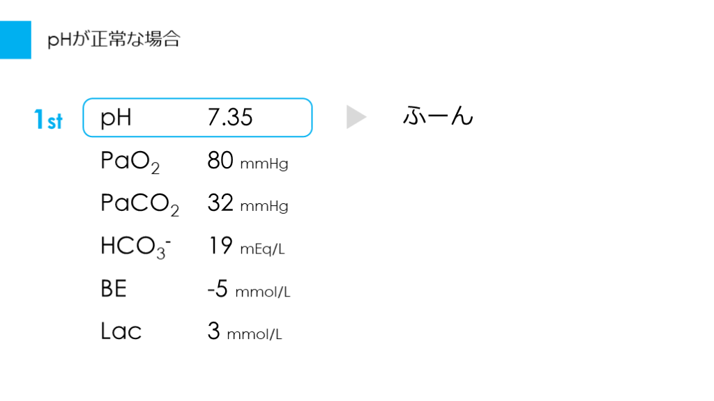 Lac 3 mmol/L pHが正常な場合 ふーん 1st