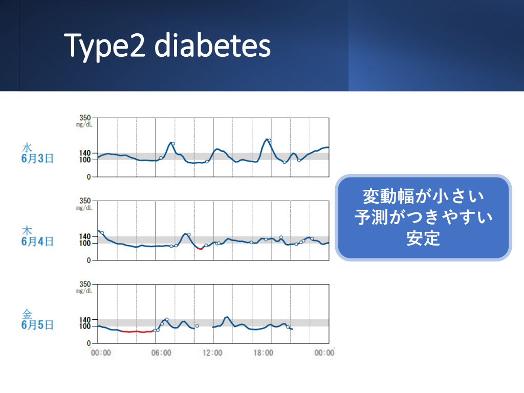 Type2 diabetes 変動幅が小さい 予測がつきやすい 安定 Hさんの血糖値とインスリン調整 #13.