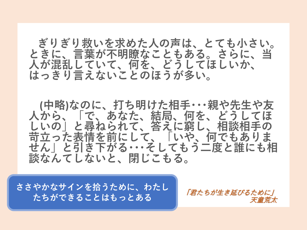 ぎりぎり救いを求めた人の声は、とても小さい。 ときに、言葉が不明瞭なこともある。さらに、当 人が混乱していて、何を、どうしてほしいか、 はっきり言えないことのほうが多い。 (中略)なのに、打ち明けた相手・・・親や先生や友 人から、「で、あなた、結局、何を、どうしてほ しいの」と尋ねられて、答えに窮し、相談相手の 苛立った表情を前にして、「いや、何でもありま せん」と引き下がる・・・そしてもう二度と誰にも相 談なんてしないと、閉じこもる。 ささやかなサインを拾うために、わたし たちができることはもっとある 「君たちが生き延びるために」 天童荒太 脂質異常症と甲状腺機能の重要性 #23.