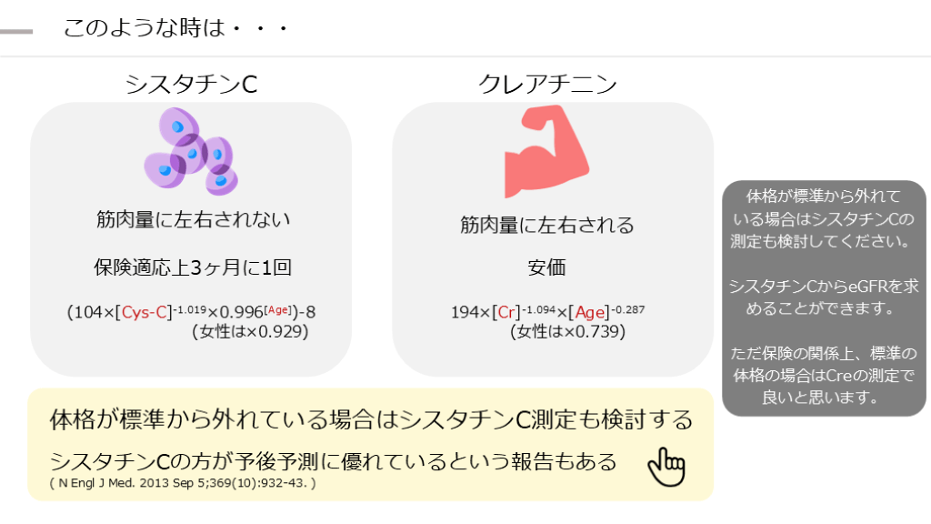 いる場合はシスタチンCの測定も検討してください。