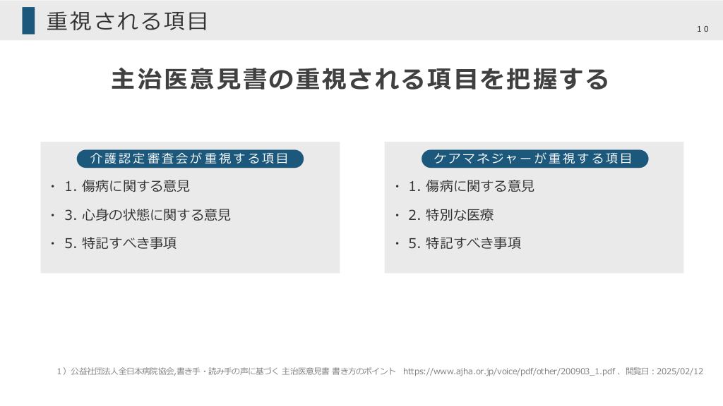 主治医意見書の重視項目