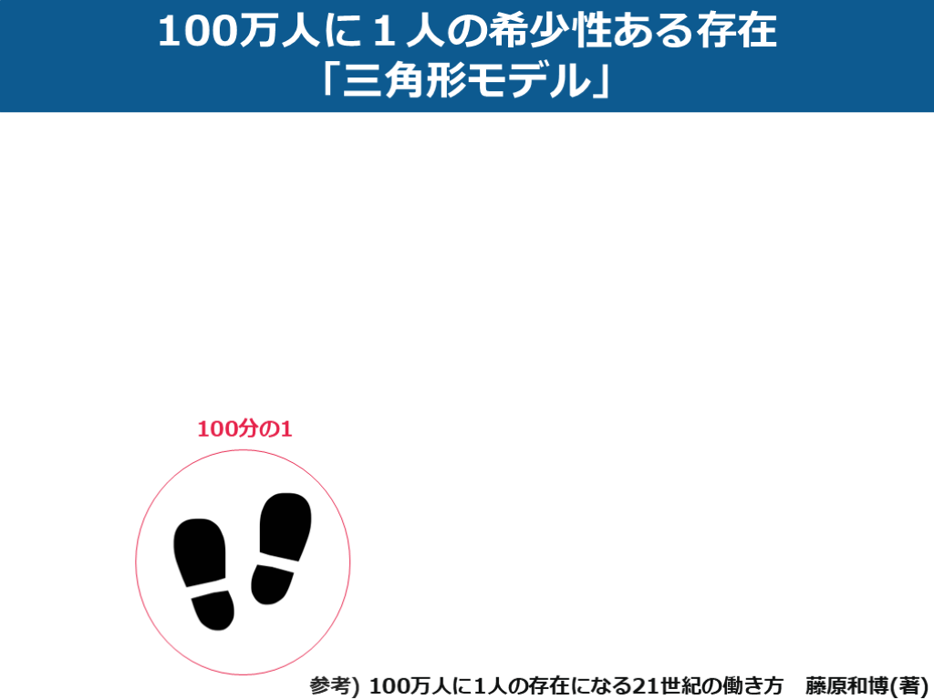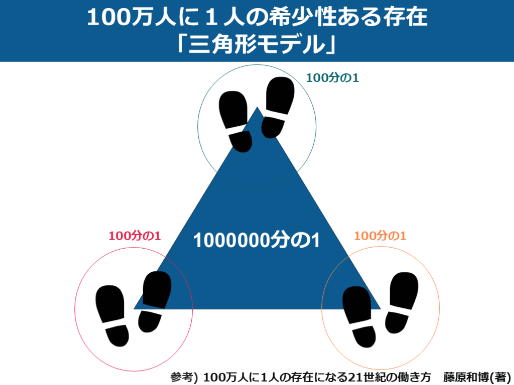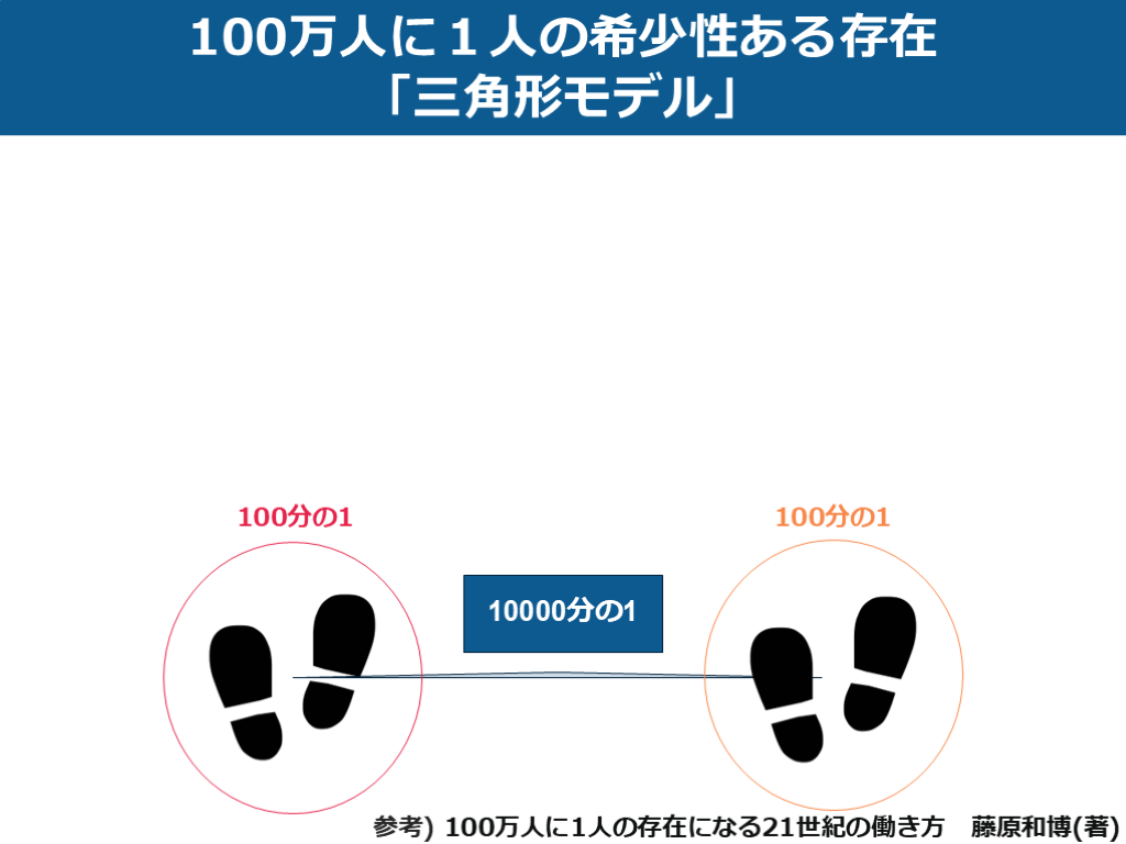 「三角形モデル」 参考) 100万人に1人の存在になる21世紀の働き方 藤原和博(著) 100分の1