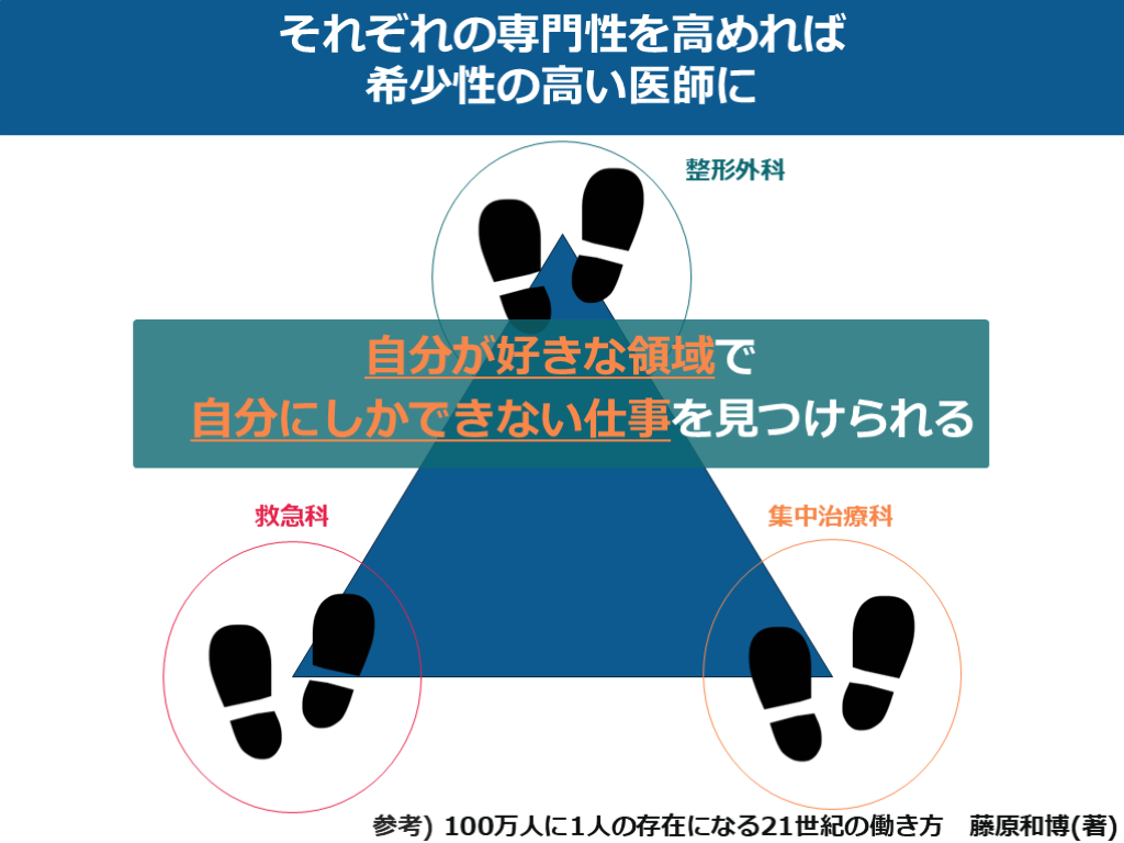 希少性の高い医師に 参考) 100万人に1人の存在になる21世紀の働き方 藤原和博(著) 救急科 集中治療科 整形外科 自分が好きな領域で
