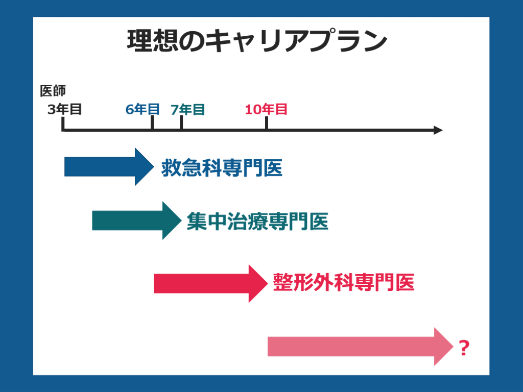 #17. 理想のキャリアプラン 救急科専門医 集中治療専門医 整形外科専門医 ? 3年目 医師 6年目 7年目 10年目
