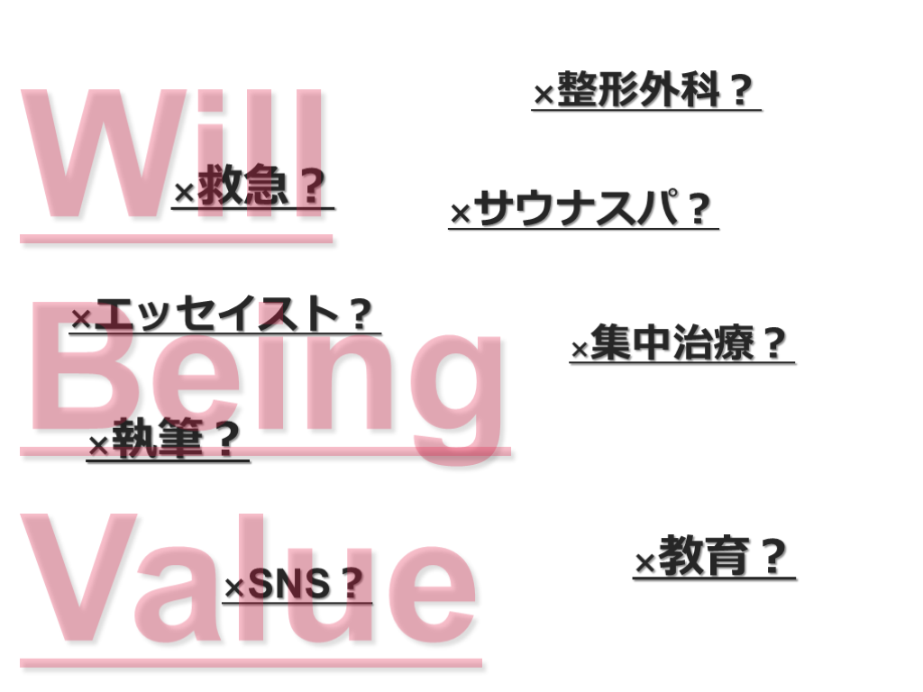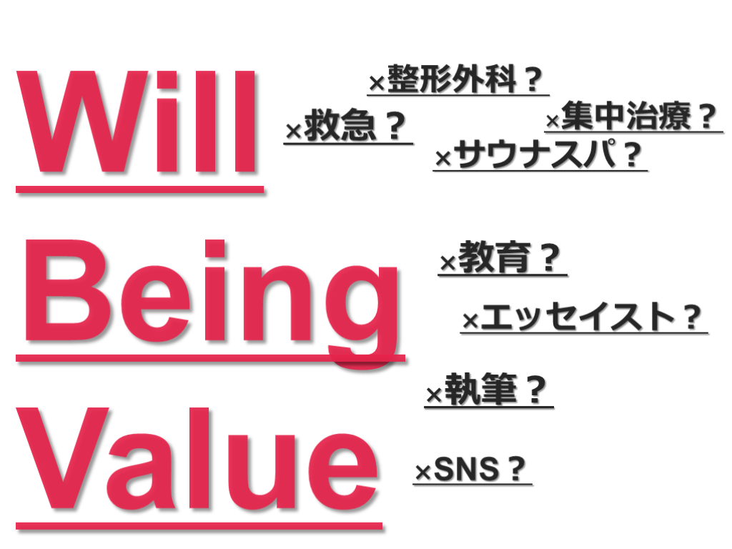 Value ×救急? ×教育? ×執筆? ×集中治療? ×SNS? ×整形外科? ×エッセイスト? ×サウナスパ?