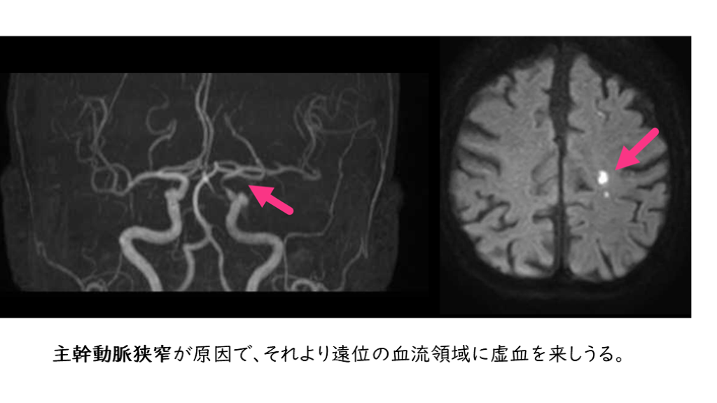 #11. 主幹動脈狭窄が原因で、それより遠位の血流領域に虚血を来しうる。