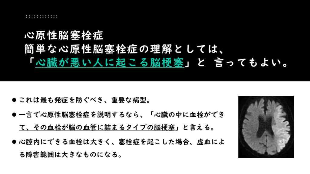 「心臓が悪い人に起こる脳梗塞」と 言ってもよい。