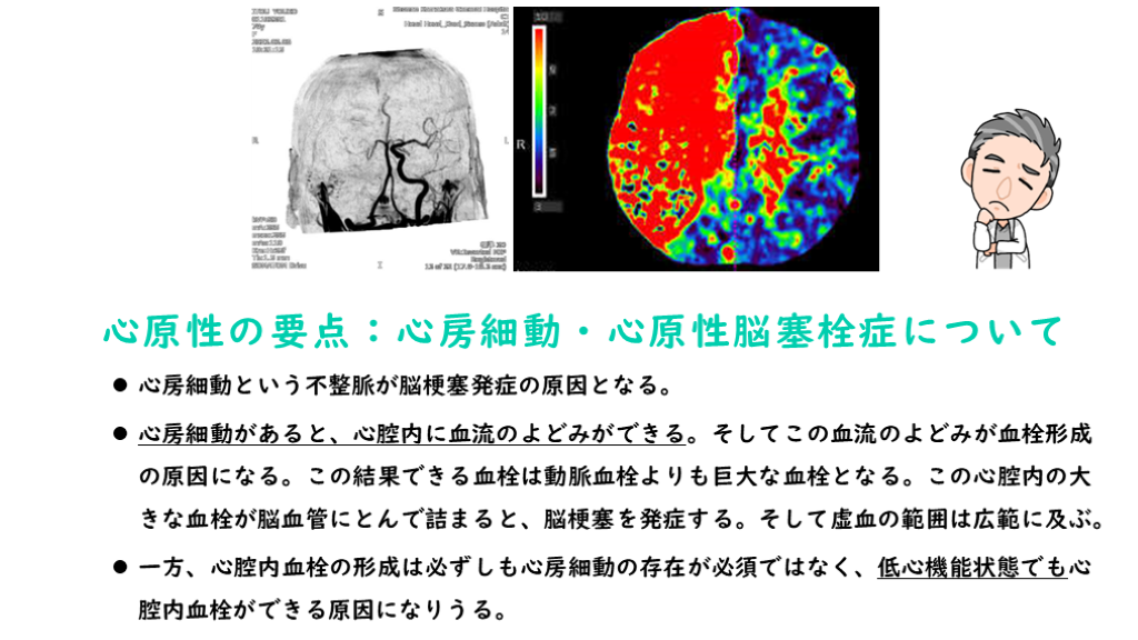 心臓が原因の脳梗塞について 最もコモンなのは心房細動による。