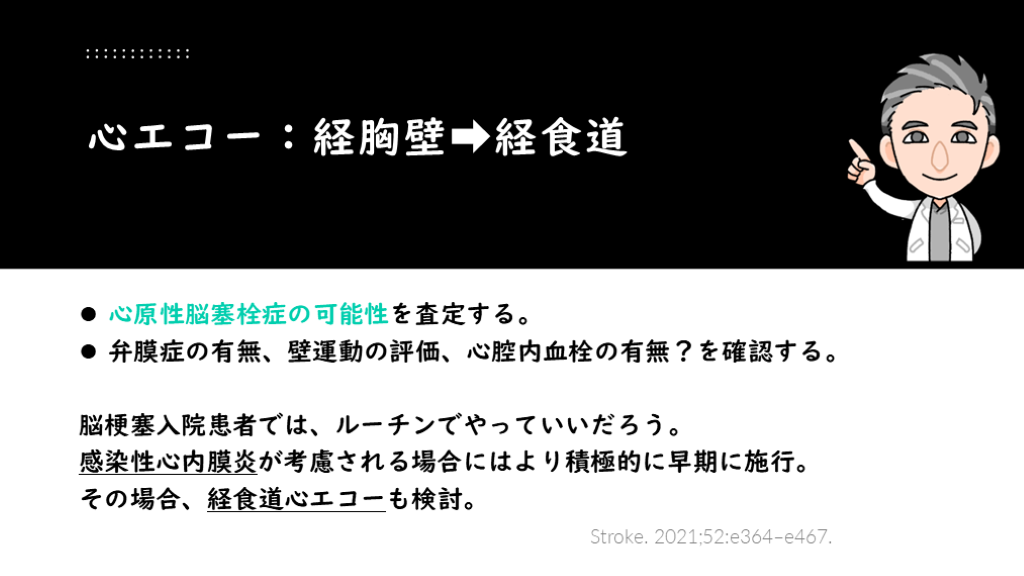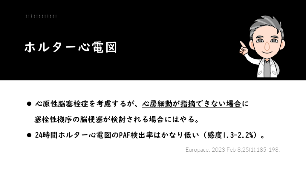 ラクナ梗塞でなく、塞栓性機序が想定される場合には心電図モニタリングをする。 脳卒中治療ガイドライン2021〔改訂2025〕.株式会社協和企画, 2023, 332p. 978-4-87794-233-5
