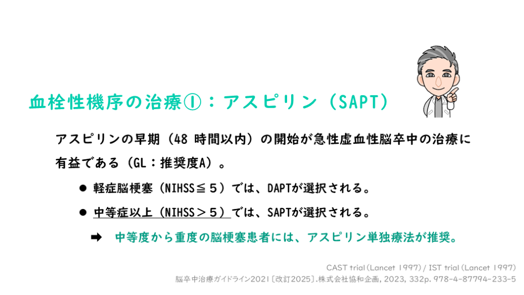 しかしながら、脳梗塞再発が仮にある場合には、一通りの評価を再考することとなる。