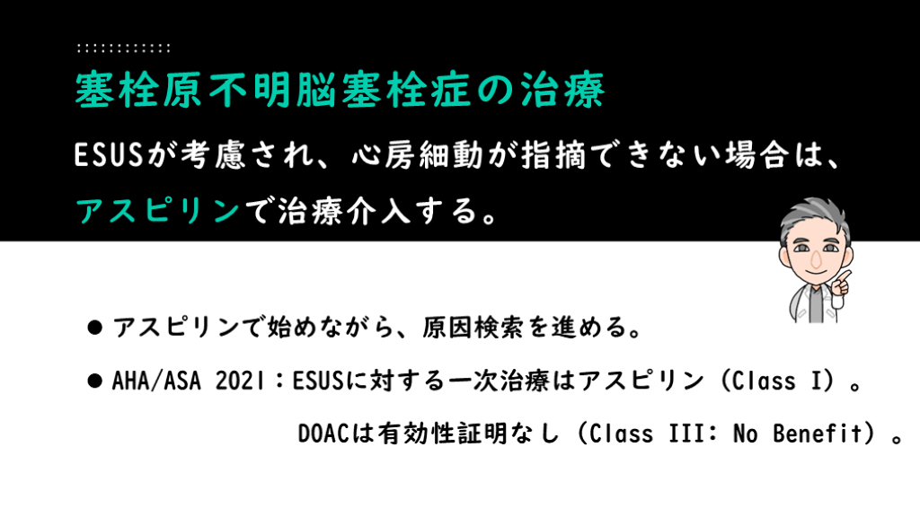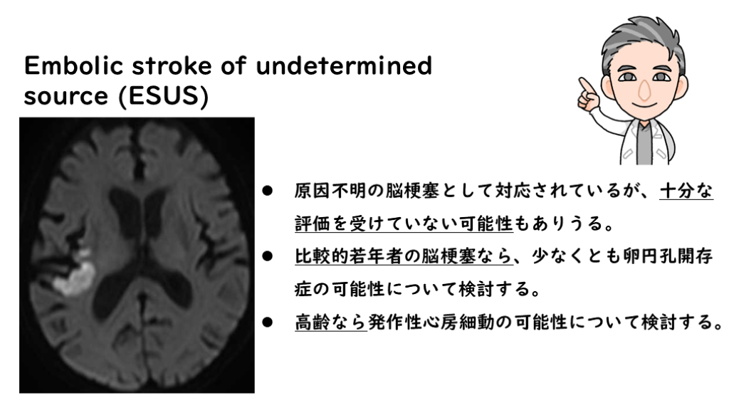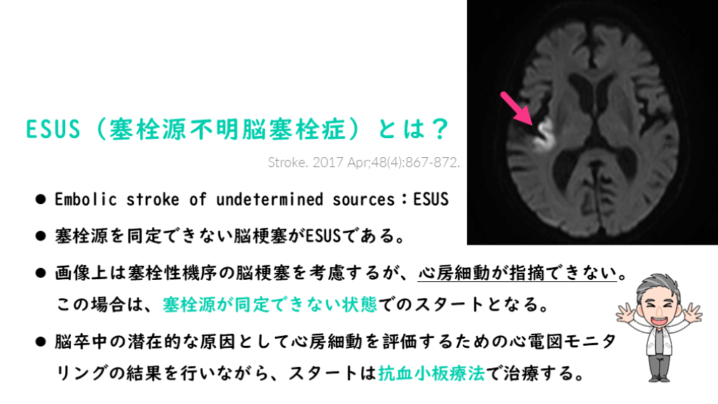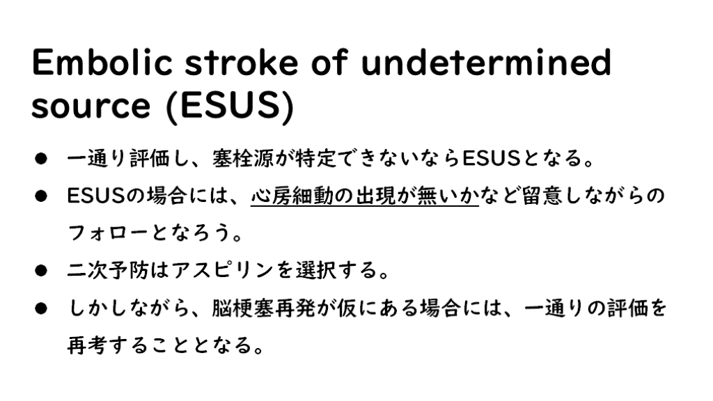 ESUSの場合には、心房細動の出現が無いかなど留意しながらのフォローとなろう。