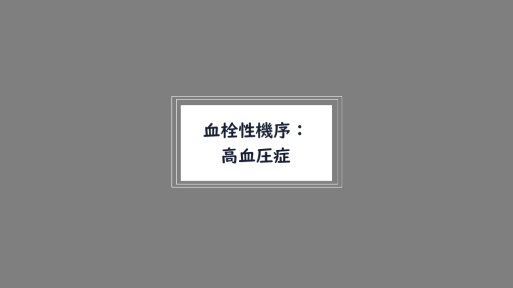 血管狭窄が原因で血流障害をきたし、その血管支配領域の虚血に至る脳梗塞の発症機序を「血栓性機序」という。