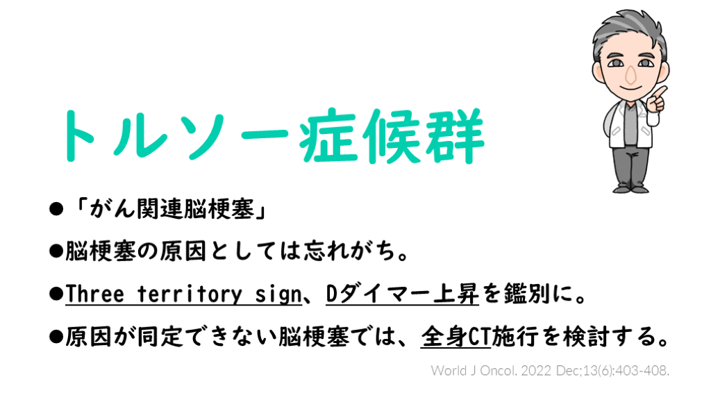 原因が同定できない脳梗塞では、全身CT施行を検討する。 World J Oncol. 2022 Dec;13(6):403-408.