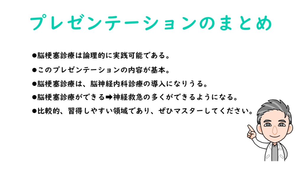 脳梗塞診療ができる➡神経救急の多くができるようになる。