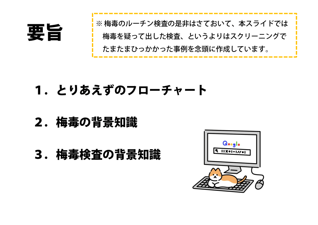 術前など、梅毒検査がおもわず陽性になってしまったときに参考にするためのスライドです。