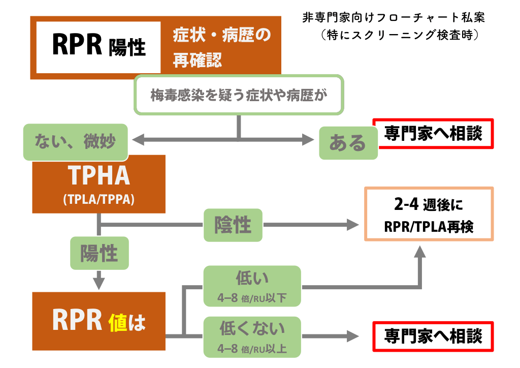 ★ (2023/09/04)スクリーニングでTPHA/TPLAも測定し、RPR-/TPHA+となった場合について、スライドを1つ追加しました。