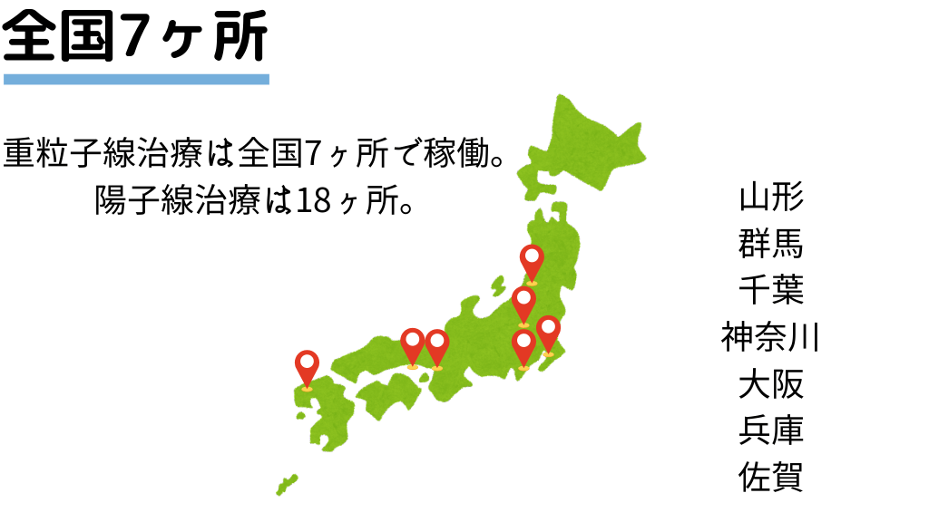 #15. 全国7ヶ所 重粒子線治療は全国7ヶ所で稼働。 陽子線治療は18ヶ所。 山形 群馬 千葉 神奈川 大阪 兵庫 佐賀