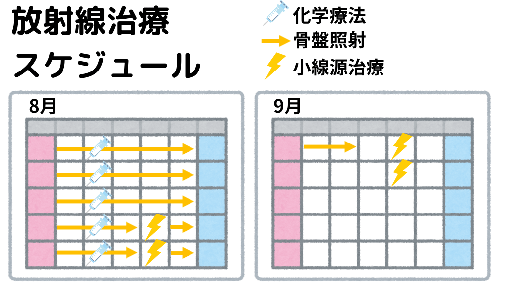 #7. 放射線治療 スケジュール 8月 化学療法 骨盤照射 小線源治療 9月