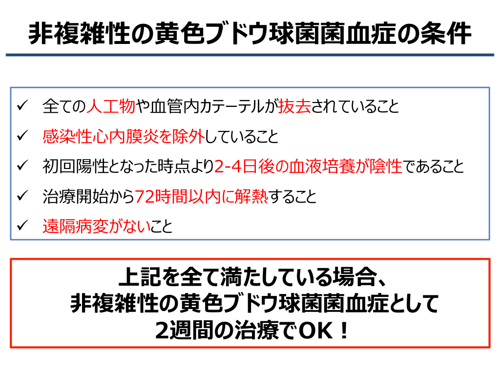 非複雑性黄色ブドウ球菌菌血症のマネージメント