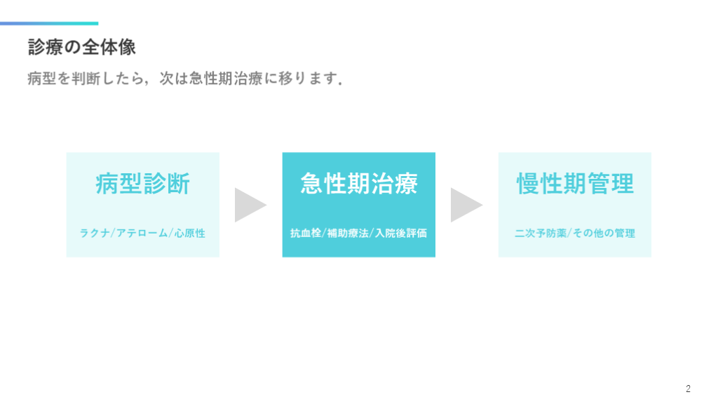 #3. 診療の全体像 病型を判断したら,次は急性期治療に移ります. 2 病型診断