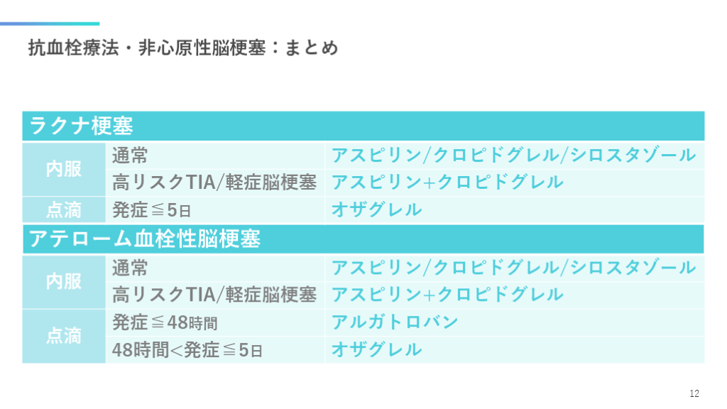 #13. 抗血栓療法・非心原性脳梗塞:まとめ 12