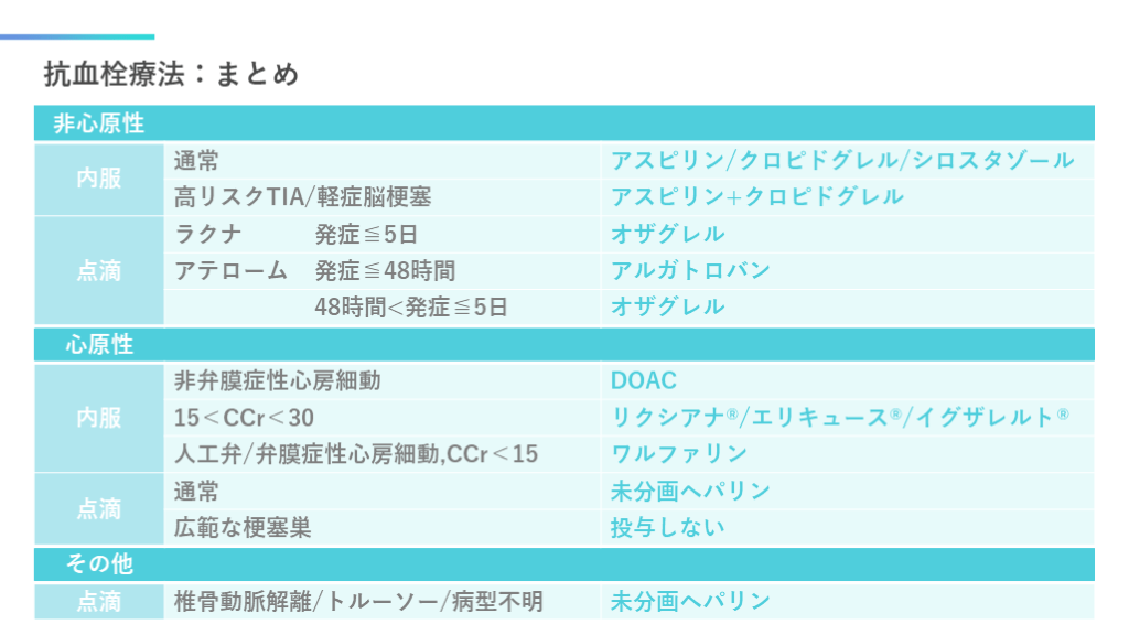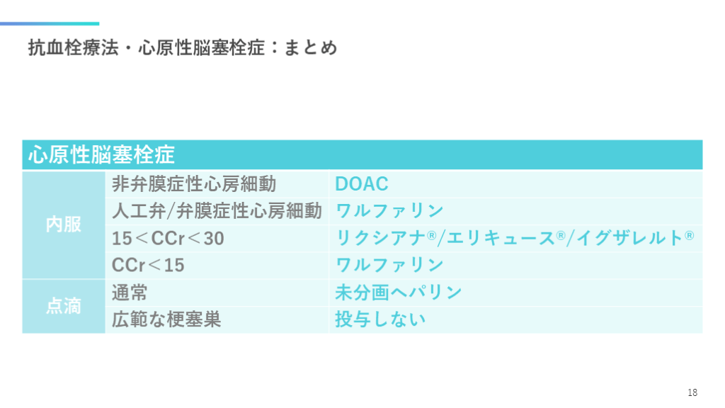 #19. 抗血栓療法・心原性脳塞栓症:まとめ 18