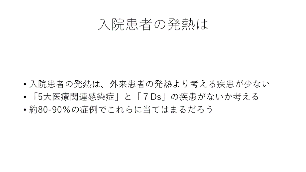#2. 入院患者の発熱は 入院患者の発熱は、外来患者の発熱より考える疾患が少ない