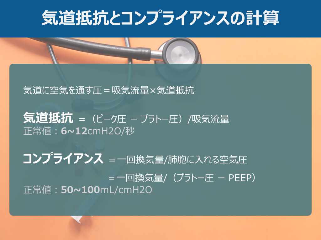 気道抵抗 =(ピーク圧 ー プラトー圧)/吸気流量