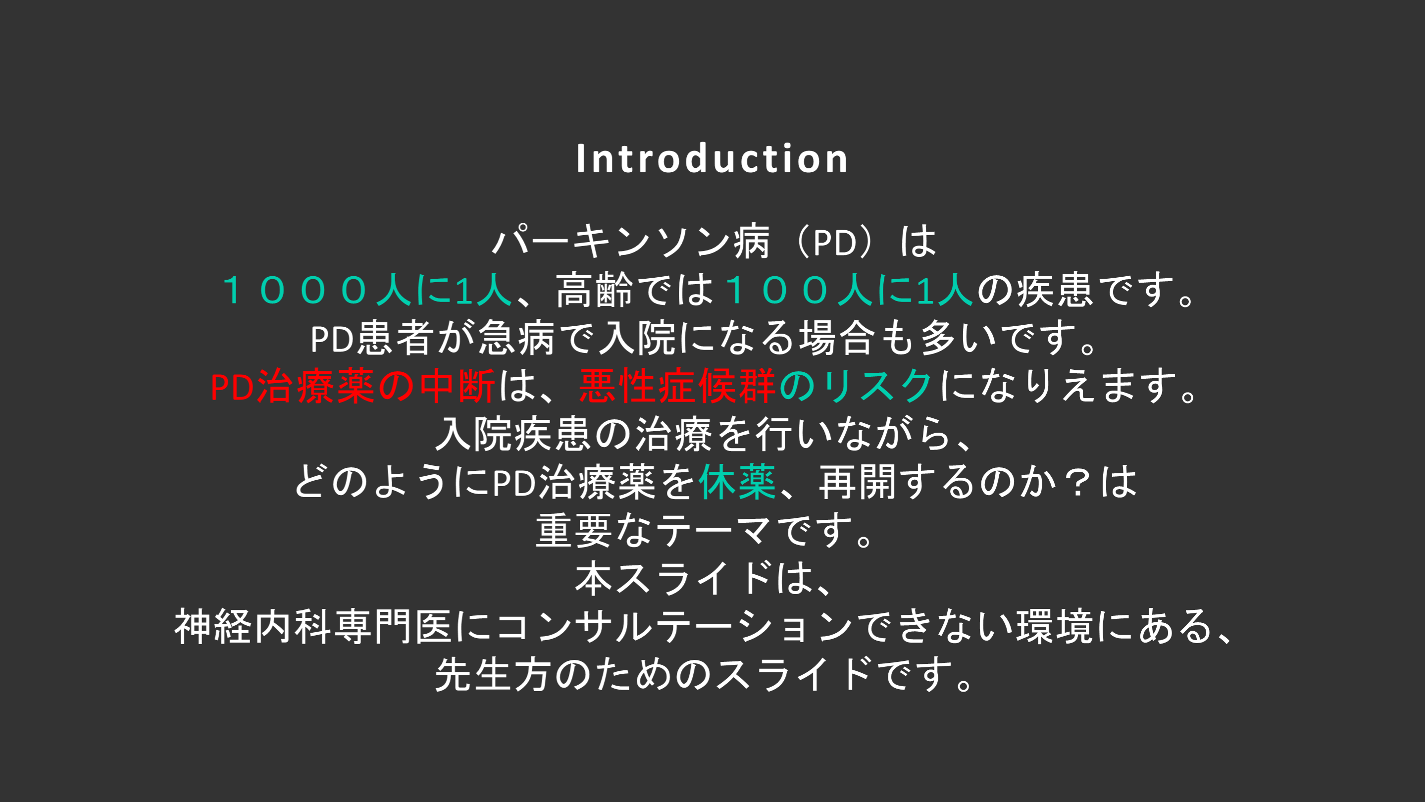 Department of Neurology, Shonan Kamakura General Hospital parenteral administration of antiparkinsonian drugs パーキンソン病治療薬の