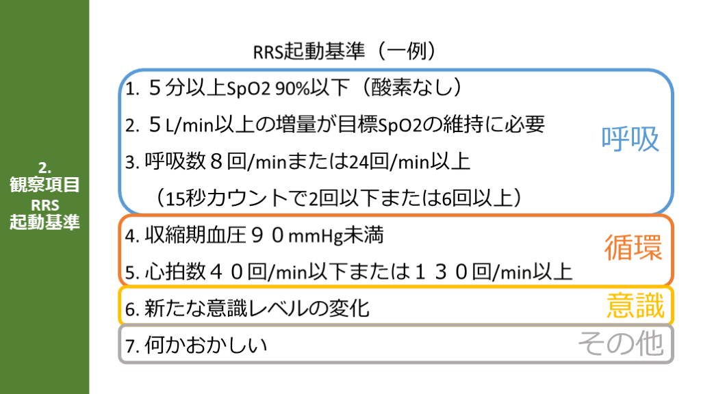 #6. 呼吸 2.観察項目RRS起動基準 RRS起動基準(一例)
