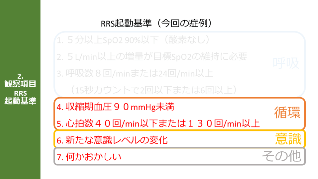 #7. 呼吸 2.観察項目RRS起動基準 RRS起動基準(今回の症例)