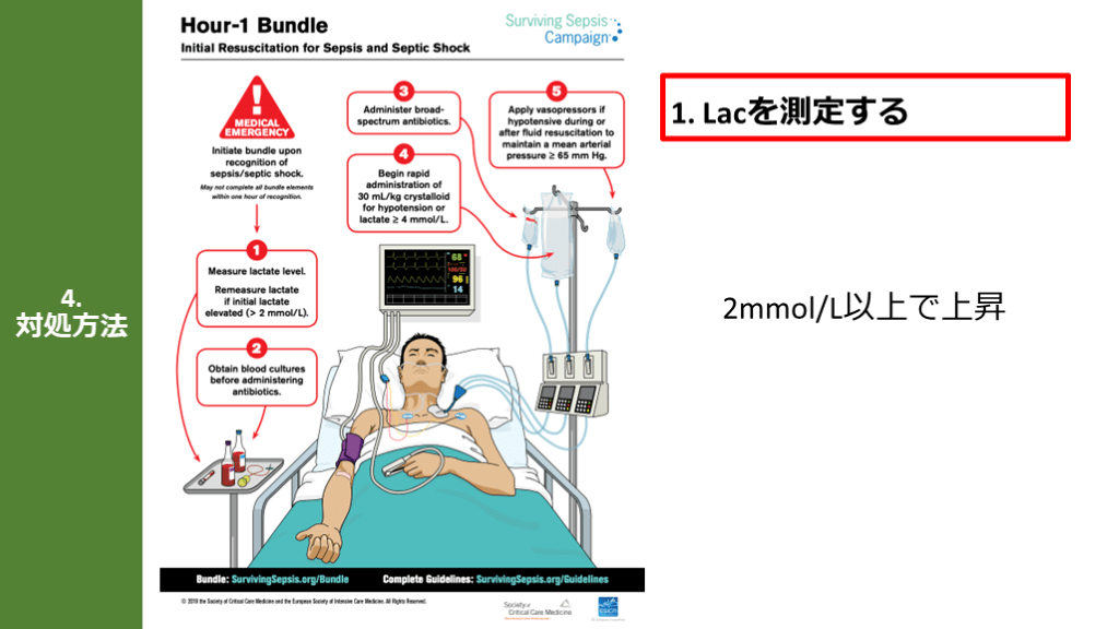 #13. 4.対処方法 Lacを測定する 2mmol/L以上で上昇