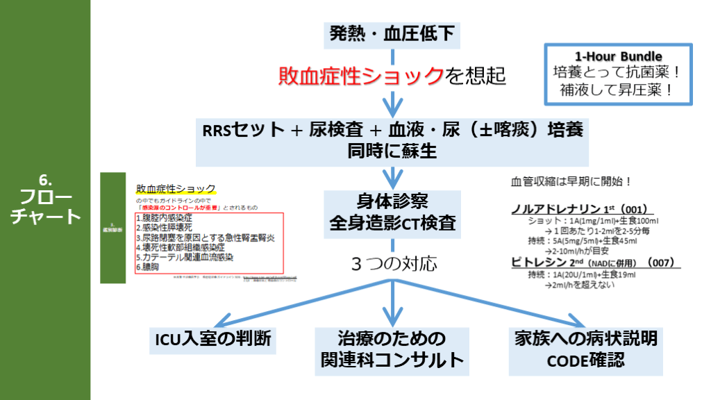 #25. 6.フローチャート 発熱・血圧低下 RRSセット + 尿検査 + 血液・尿(±喀痰)培養