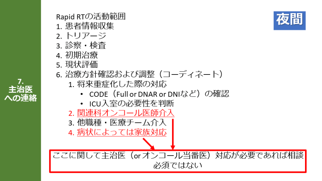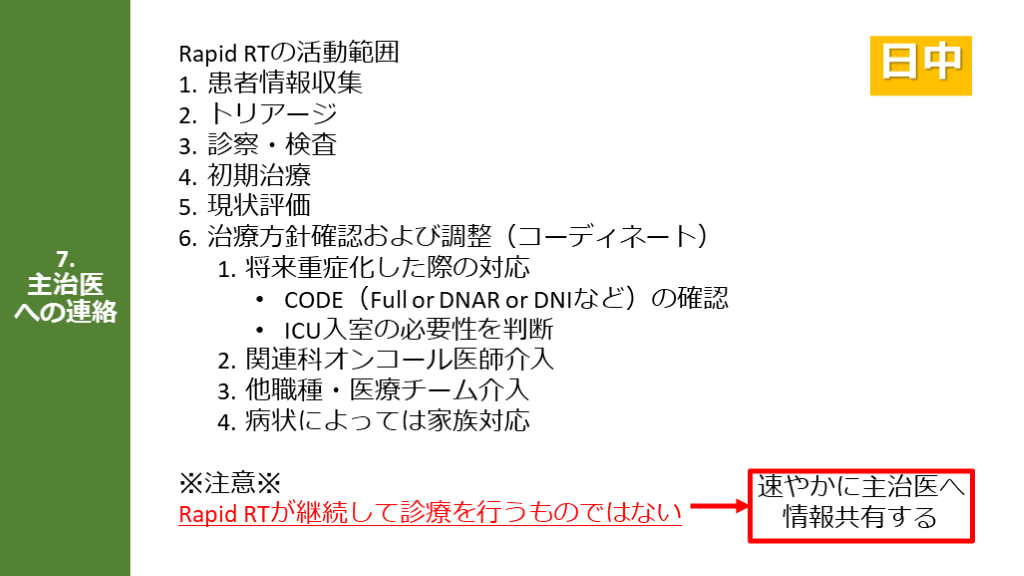 Rapid RTが継続して診療を行うものではない 日中 速やかに主治医へ